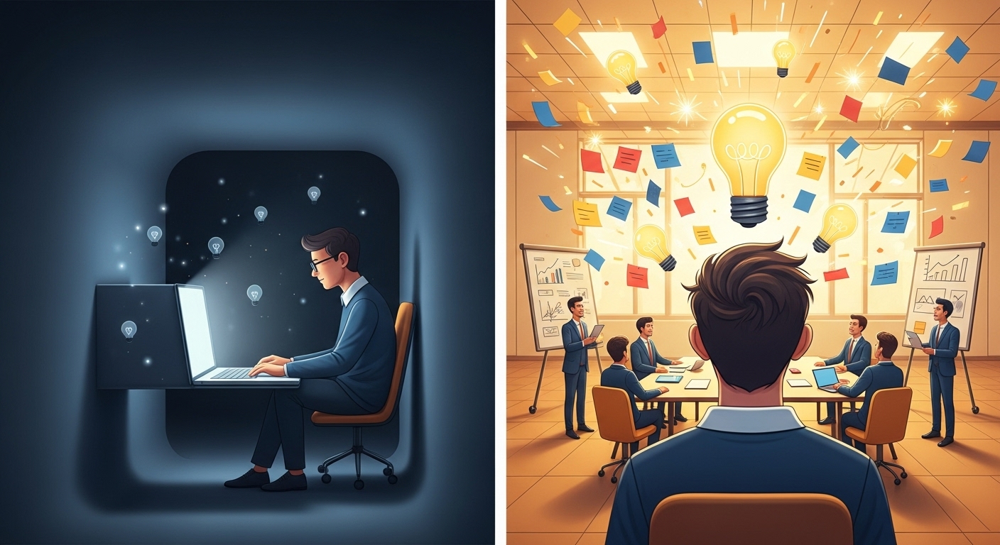 화상회의로 할 것과 대면회의로 할 것을 잘 구분할 줄 알아야 합니다. 정보 공유나 진행 상황 보고 같은 회의는 온라인으로 충분합니다. 하지만 신제품 아이디어 회의, 문제 해결 워크숍, 전략 기획 회의처럼 창의성과 혁신적 발상이 필요한 회의라면 불편하더라도 반드시 대면으로 만나야 합니다. 물리적 공간을 함께 공유하고 서로의 에너지를 직접 느끼며 자유롭게 시선을 움직이고 생각할 수 있는 환경. 그것이 바로 창의성의 기본 조건입니다.