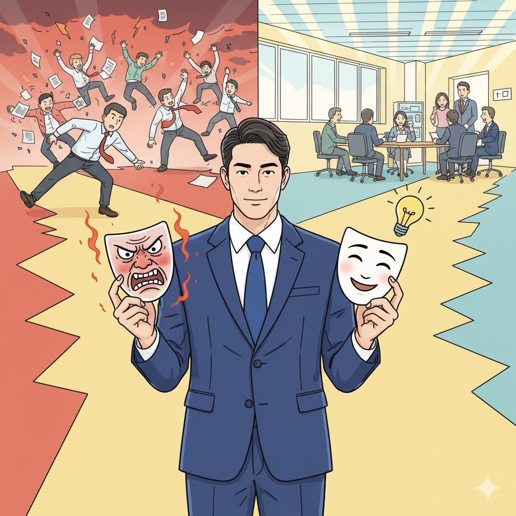 리더라면 "있는 그대로의 나"를 무조건 표현하는 것이 아니라, 상황과 관계를 고려해 적절한 '버전'의 나를 선택하는 능력을 갖춰야 합니다. 회의에서 무례한 발언을 하고 "나는 원래 솔직한 사람이야"라고 변명하는 것은 솔직함이 아니라 미성숙함입니다. 타인에게 미치는 영향을 예상하여 의식적으로 자신의 반응과 표현을 선택하는 것이 바로 '감정지능'이고 진정한 리더십의 시작이죠.