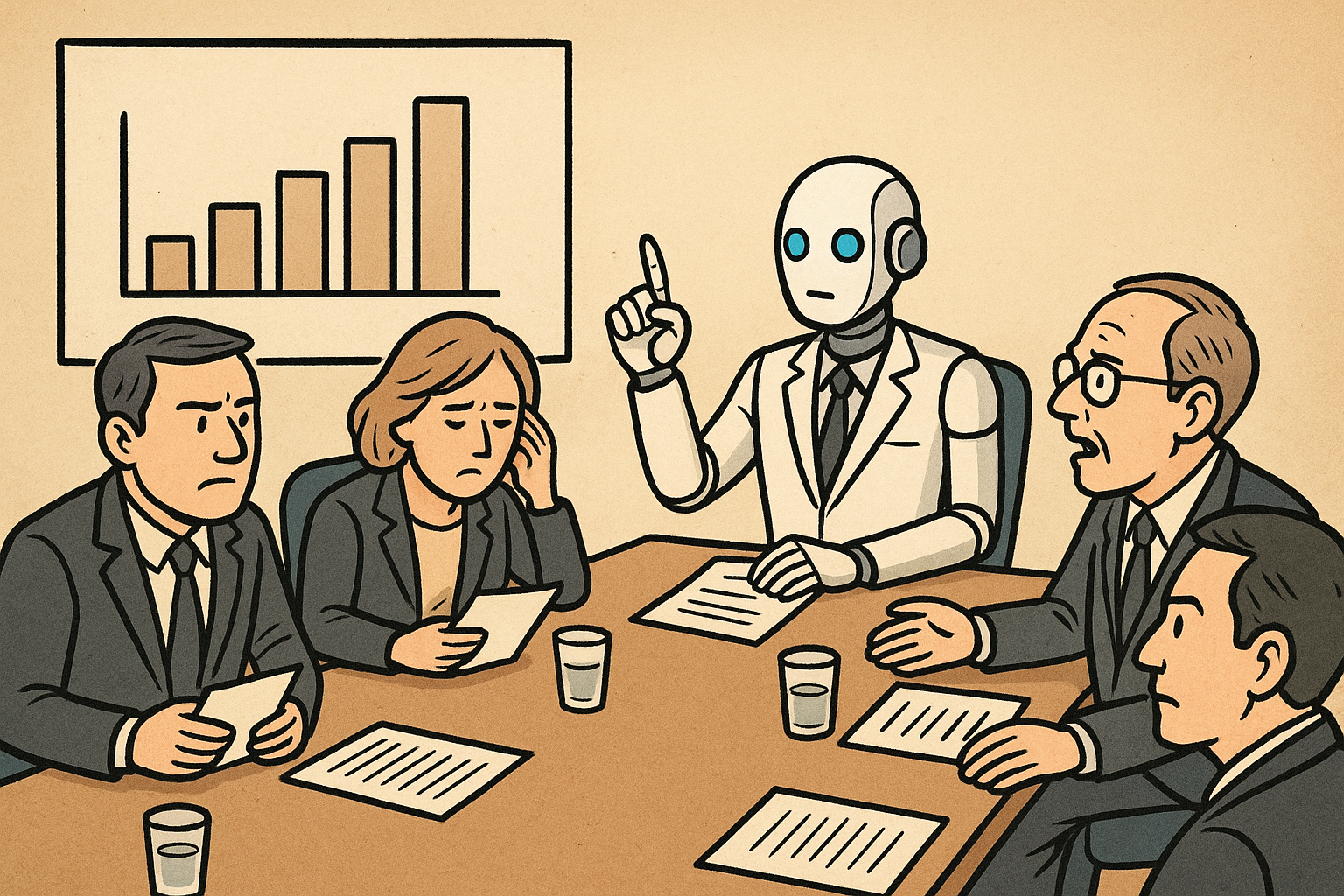 상당한 보수를 받는 이사들이 1년에 네다섯 번 모여서 하는 일이 고작 이렇다면 이런 장면에서 이런 질문이 생겨나지 않을까요? "차라리 AI를 이사회에 참여시키는 게 나을 듯한데?", "사람들로 구성된 이사회가 과연 좋은 의사결정을 낼 수 있을까?"