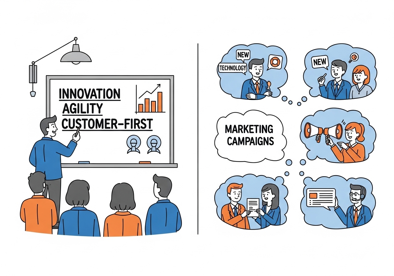 2. 부서별 맥락에 맞게 번역하라. "성장"이 재무팀엔 유연한 예산 편성을, 운영팀엔 공급망 효율화를, HR팀엔 인재 파이프라인 확대를 의미하도록 구체화하라.