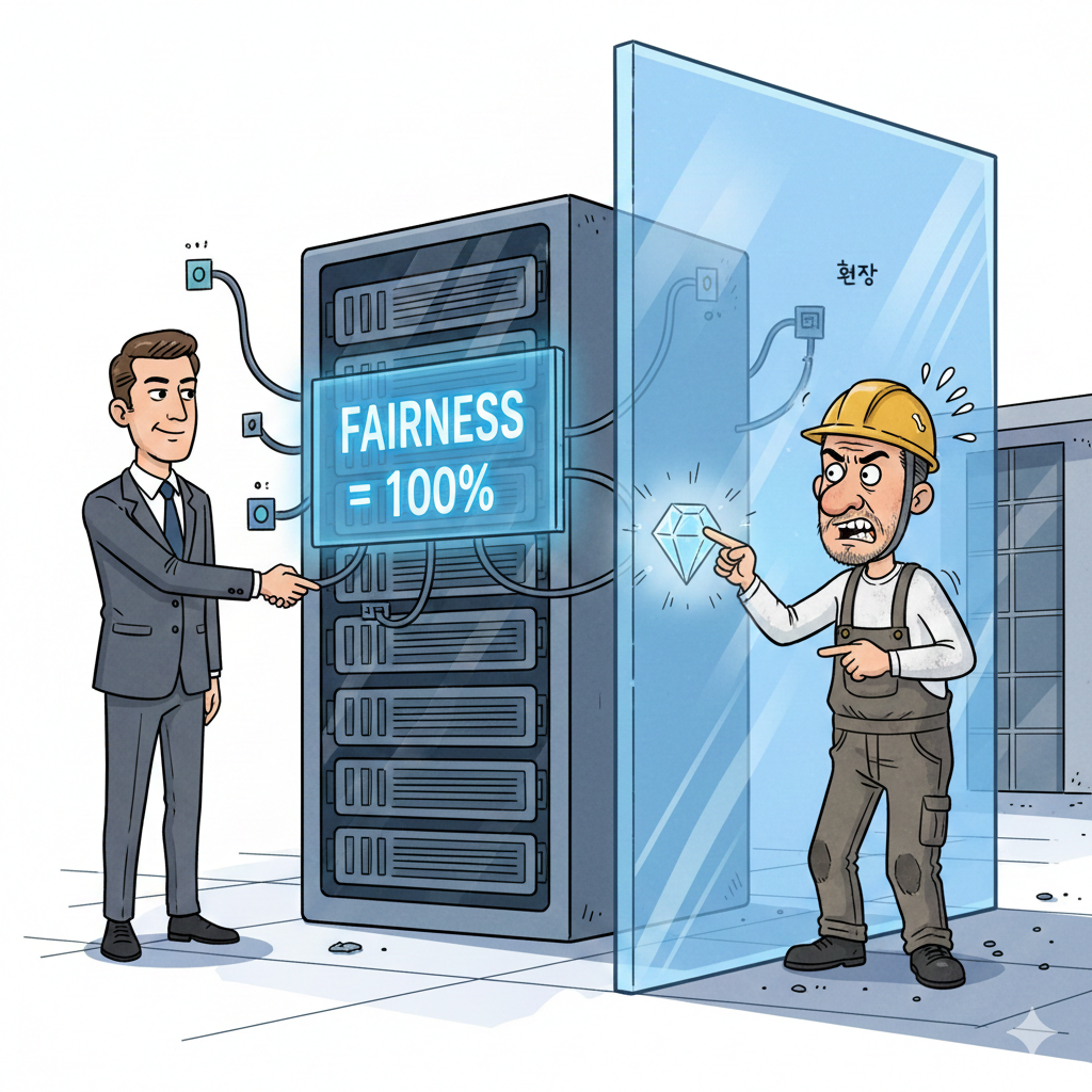 AI가 도입되고 나서 이 두 가지 관점 중에서 무엇이 우위를 차지했을까요? 당연히 AI 도입을 주도하고 AI를 적용하는 인사팀의 관점, 즉 수치화된 데이터와 고정된 기준을 바탕으로 한 공정함이 채택되고, 일선 관리자들이 중시하는 맥락적 공정성은 노이즈나 오류로 취급하고 말았습니다.