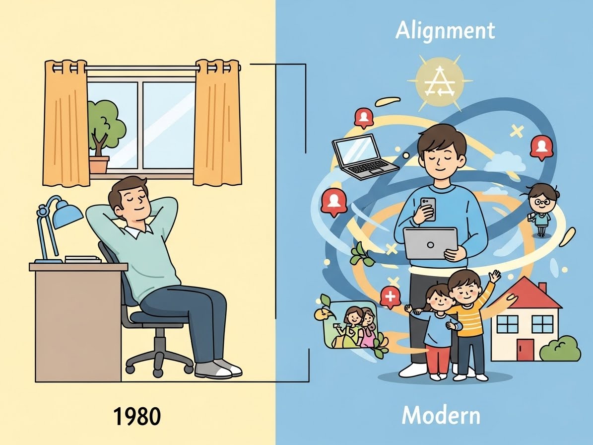 그렇기에 이제는 워라밸이 아니라 '일과 삶의 정렬(Work-Life-Alignment)'이란 개념으로 자신의 직업을 바라봐야 합니다. 어떨 때는 업무가 폭풍처럼 몰아칠 때가 있고, 또 어떨 때는 가족과 육아가 우선되어야 할 때가 있습니다. 그렇기에 기계적으로 일과 생활에 시간을 배분할 것이 아니라 '내 삶의 우선순위와 지금 나의 에너지를 일치시키는 것'이 필요하죠. 이것이 바로 '정렬'의 의미입니다.