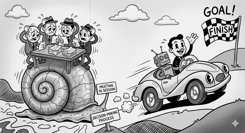 물론 합의에 의한 의사결정 방식을 모두 버릴 필요는 없습니다. 중대한 투자 건처럼 합의와 숙고가 반드시 필요한 영역도 분명 존재하니까요. 하지만 핵심은 이것입니다. AI가 비즈니스의 속도를 가속시키는 지금, 기존의 느리고 무거운 의사결정 방식을 맹목적으로 고수해서는 안 된다는 점입니다.